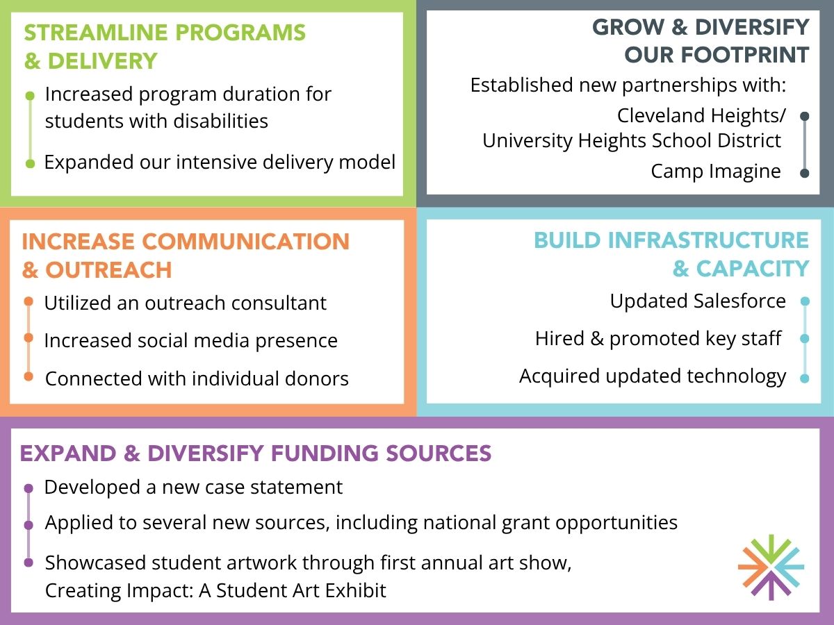 We delivered more programs in 2024-2025 than expected, even as our main program partner, the Cleveland Metropolitan School District, faced significant financial challenges. Our team hustled to find creative funding sources that kept our growth on track. With the increase in programming, we efficiently brought a number of contracted artist-educators up to speed, delivering more than 1,000 sessions in just the spring of 2025.